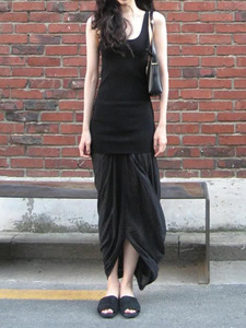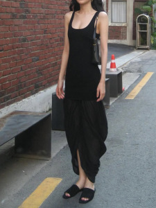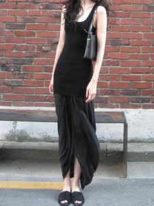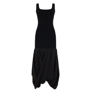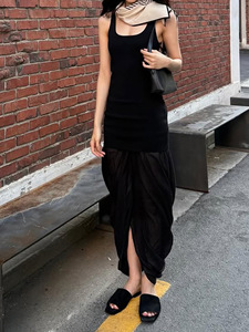 简约高级感穿搭拼接假两件叠穿针织连衣裙跨境U领收腰显瘦长裙女