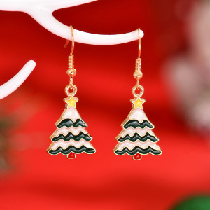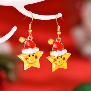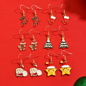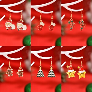 欧美跨境热卖 圣诞系列耳挂套装合金卡通滴油铃铛雪花吊坠耳环女