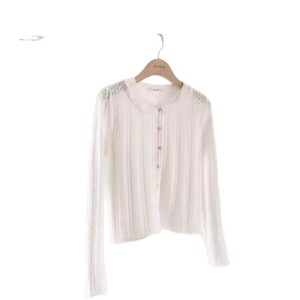 现货韩国小众潮牌oun*e重工花边领复古甜美针织长袖开衫外套