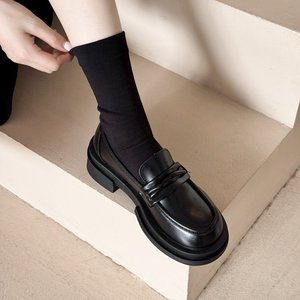 黑色乐福鞋女2025夏季新款厚底百搭法式英伦小皮鞋一脚蹬软皮单鞋