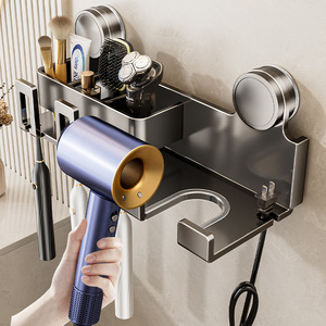 吸盘吹风机置物架牙刷架一体卫生间风筒支架挂墙式漱口杯收纳挂架