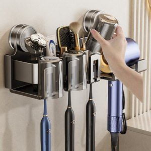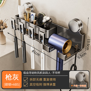 枪灰【吸盘】4人牙刷架+吹风机架(无杯)
