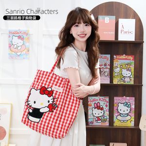 三丽鸥正版授权凯蒂猫美乐蒂单肩包购物袋可爱少女心大容量格子萌