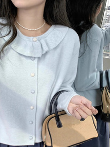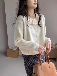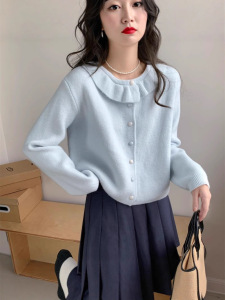 韩系学院风温柔好看娃娃领宽松时尚外穿甜美减龄针织开衫毛衣外套