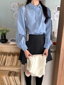 蕾丝拼接翻领长袖衬衫女秋季广州十三行2025新款韩版宽松休闲上衣