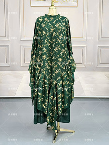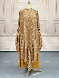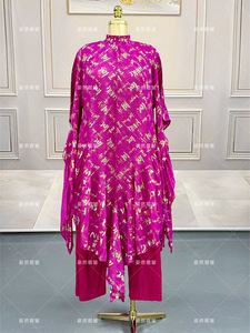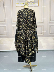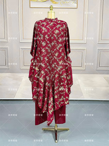非洲大码女装时尚套装三宅褶皱字母烫金上衣百褶长裤两件套欧美风