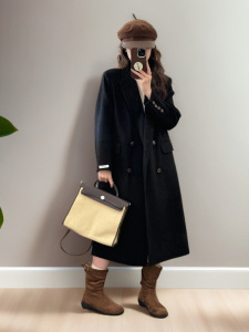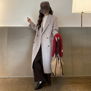 韩系西装领女长款大衣女双面羊绒羊毛呢外套秋冬修身塑形高端韩版