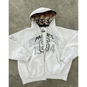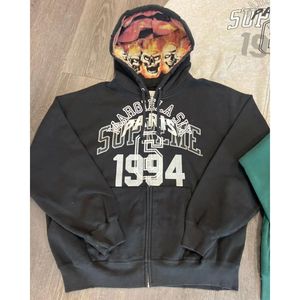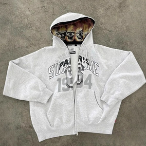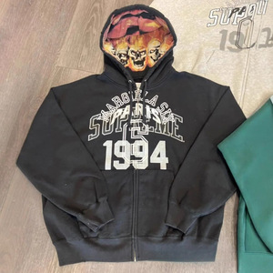跨境拉链开衫新款跨境1994英文印花国潮宝藏男孩连帽衫批发浅