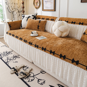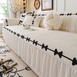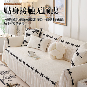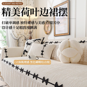 2025奶油风法式裙边沙发垫四季通用防滑防猫抓高级感坐垫套罩盖布