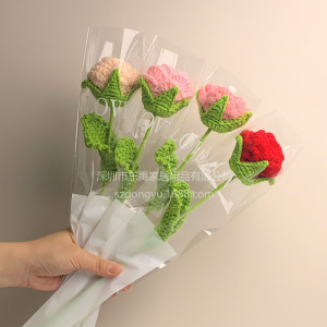玫瑰花编织花束假花手工钩针仿真花毛线花朵成品情人节教师节礼物