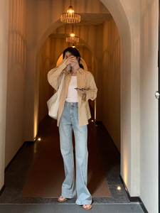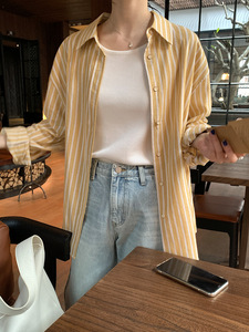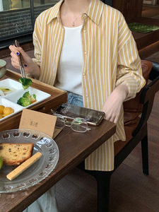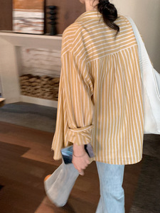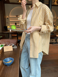 黄色条纹衬衫外套女秋季2025新款韩版慵懒宽松显瘦长袖衬衣上衣