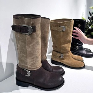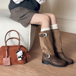 拼接堆堆靴女2025年秋冬新款骑士靴绝绝子百搭超绝酷复古风中筒靴