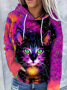跨境2025秋季新品基础大众小猫3d数码印花潮流时尚连帽衫卫衣