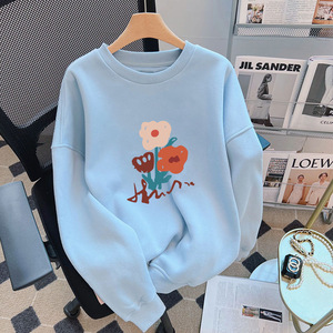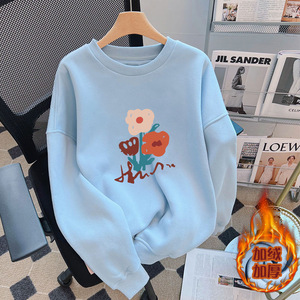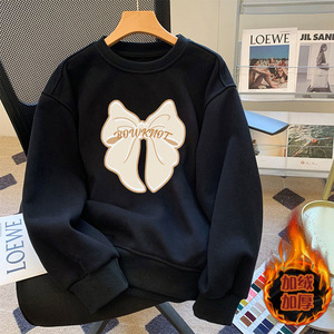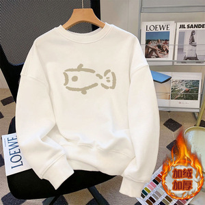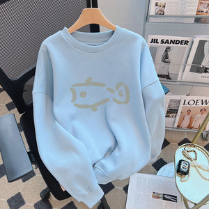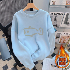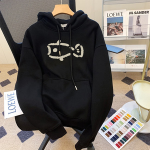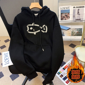 黑色小鱼圆领卫衣女2025年新款爆款秋冬宽松慵懒风上衣加绒冬外套