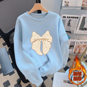 雾霾蓝圆领-蝴蝶结款【加绒】
