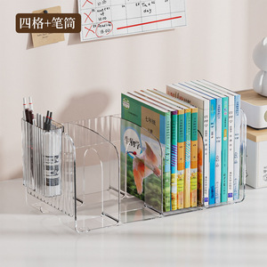 桌面书立书架收纳盒透明学生书本书桌立架分隔板亚克力笔筒置物架