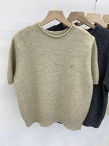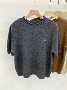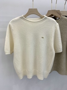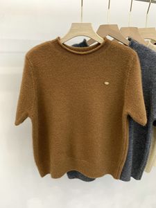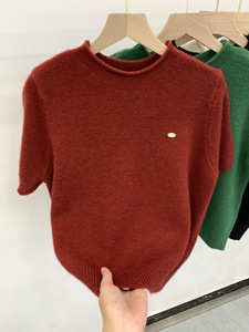 秋季新款高级感糖果色圆领纯色短袖针织衫女时尚百搭减龄宽松毛衣