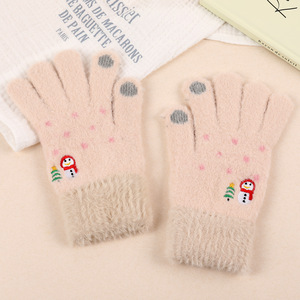 冬季全指可触屏可爱雪人毛绒针织保暖手套