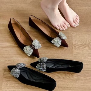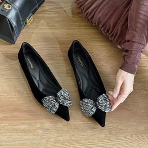 朱朱家2025秋季新百搭休闲单鞋水钻蝴蝶结名缓风尖头软底26S1353