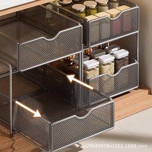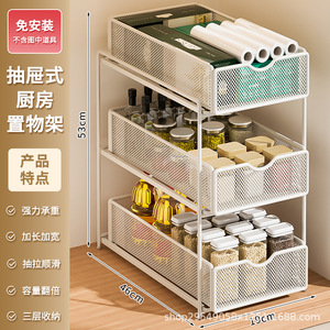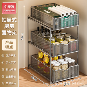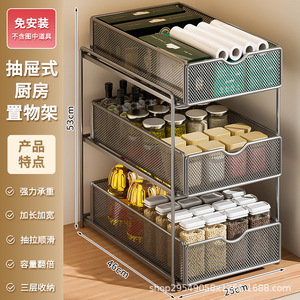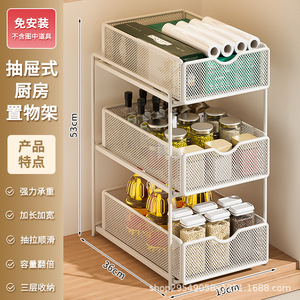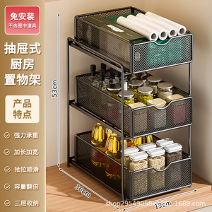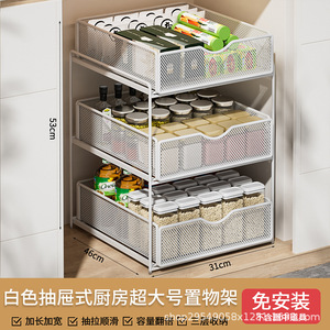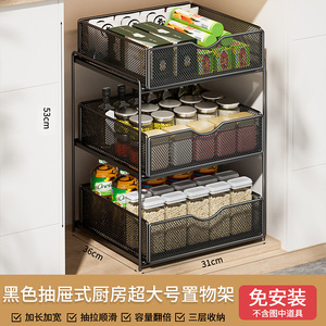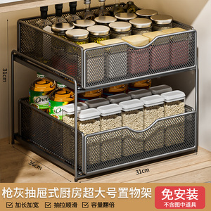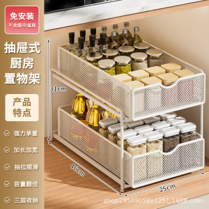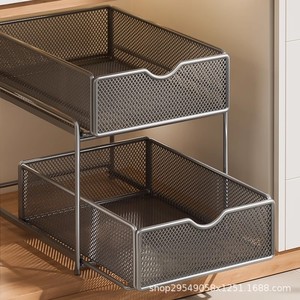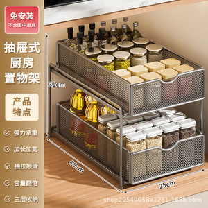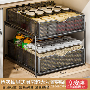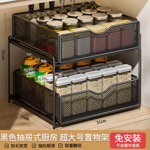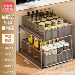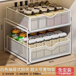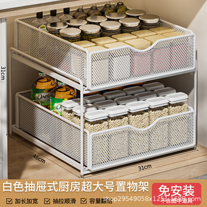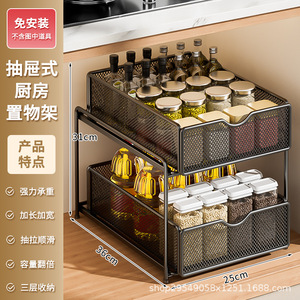 厨房下水槽抽拉式置物架双层橱柜内分层架子超深抽屉拉篮收纳神器