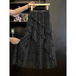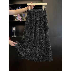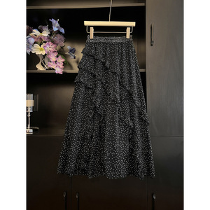 三标齐全天猫品质 五线打边 法式度假风显瘦高腰波点半身裙