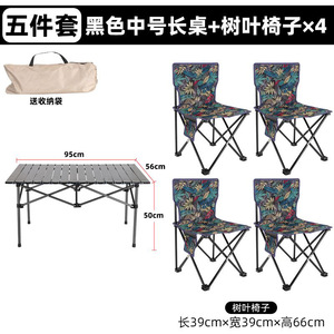 黑色中号长桌+树叶椅子x4