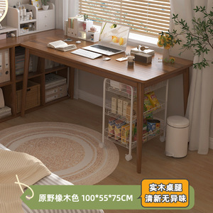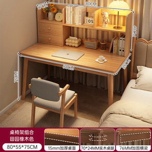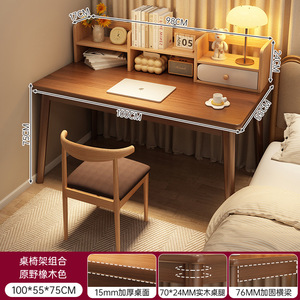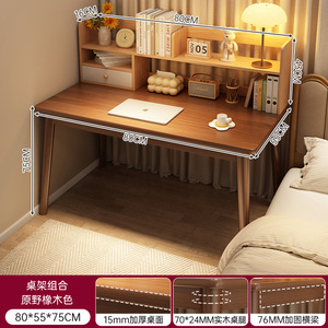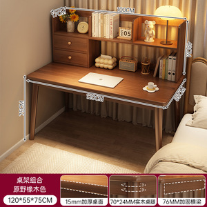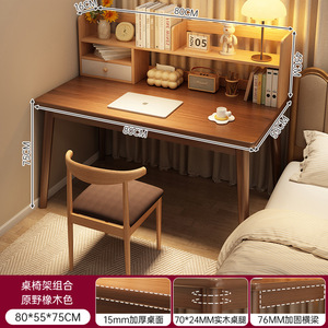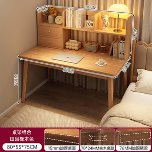 书桌书架一体桌家用成人电脑桌简易办公桌实木腿卧室学生学习桌子
