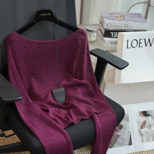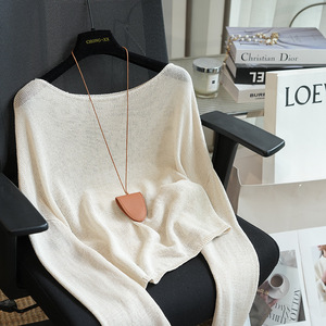 虫小小 法式一字领宽松显瘦和纸纱针织衫女透气防晒罩衫夏季991Q