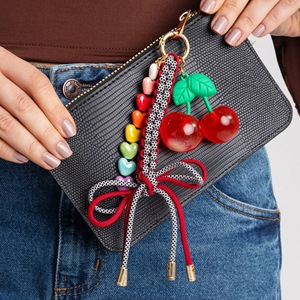 欧美跨境彩色多巴胺包包扣爱心珠子蝴蝶结樱桃吊坠简约百搭钥匙扣