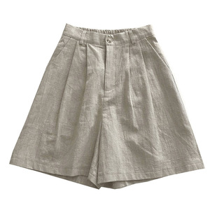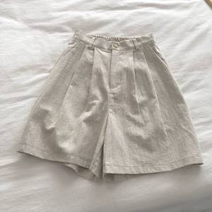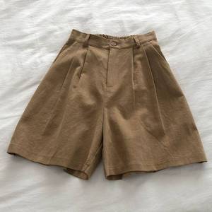 透气棉麻短裤日系复古高腰显瘦阔腿五分裤休闲西装中裤女春夏
