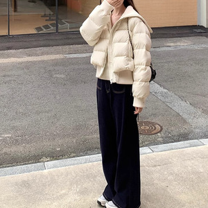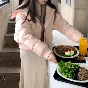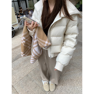 预售白鸭绒罗纹小短款立领羽绒服女冬季气质大翻领保暖外套
