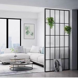 北欧风铁艺隔断屏风卧室客厅玄关出租房分隔墙简约黑框装饰挂窗帘