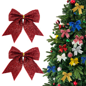 12件圣诞蝴蝶结挂饰金粉蝴蝶结装饰圣诞树挂件装扮用品婚礼布置品