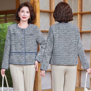 中年妈妈装秋装小香风短外套中老年女装春秋季2025新款时尚呢上衣