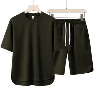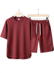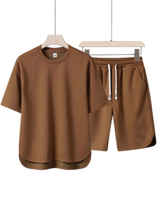2025外贸最新潮流菠萝格休闲套装外贸宽松休闲夏季舒适短袖套装