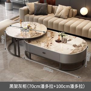 意式轻奢椭圆形玻璃茶几客厅家用茶水桌网红高级感大理石茶几组合