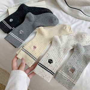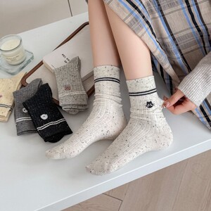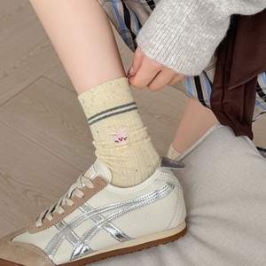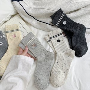 Mekki袜子女秋冬新款韩系ins女袜点子纱中筒袜可爱刺绣小动物女袜