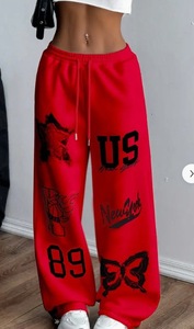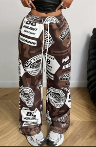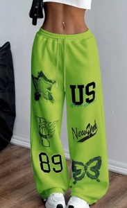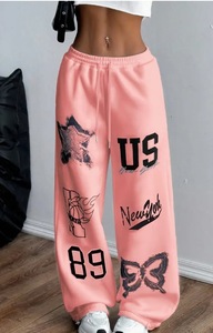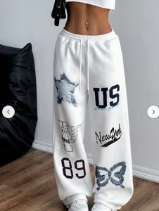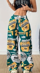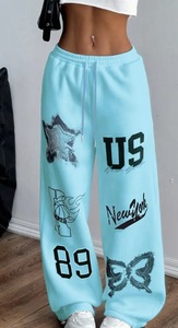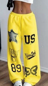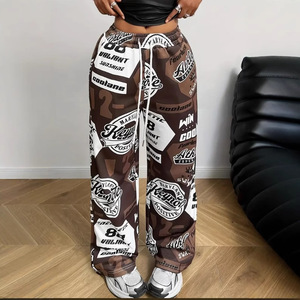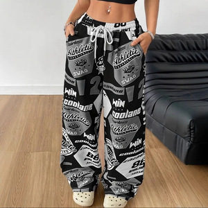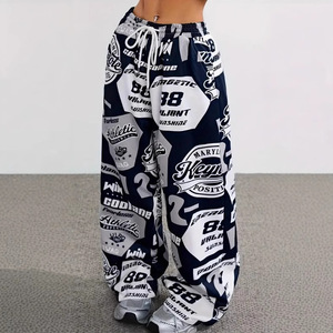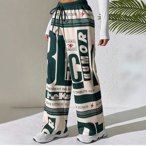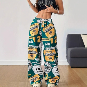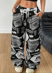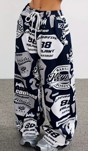 跨境热销欧美女士秋冬时尚长裤数字与字母图案印花休闲卫裤阔腿裤