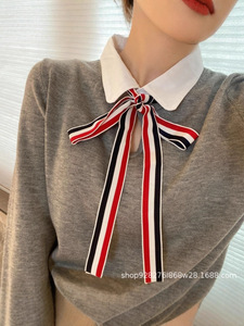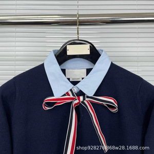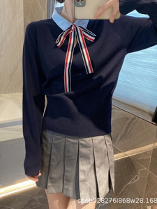濮院毛衣早秋韩系显瘦小个子简约织带翻领假两件打底衫针织衫丹皓