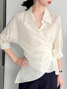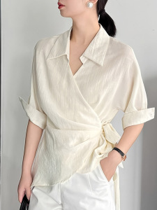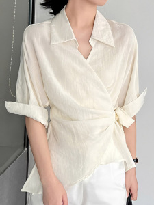 轻奢老钱风高级感气质职场穿搭收腰别致设计感夏显瘦掐腰短袖上衣