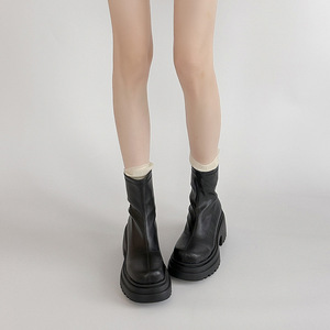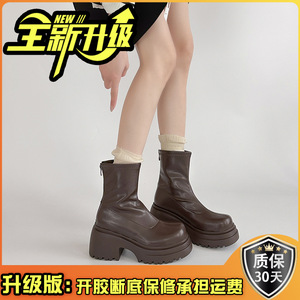 美拉德皮靴小个子防水台女士短靴秋冬季新款厚底不过膝时尚马丁靴