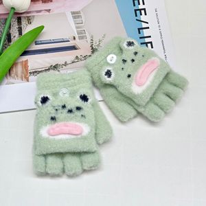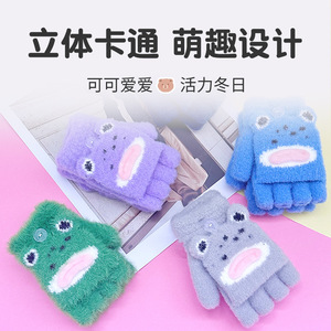 新款卡通冬季保暖儿童手套毛绒手套男女女童翻盖两用手套小孩