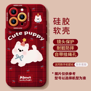 围巾小狗苹果16promax手机壳16新款硅胶14plus可爱15pro全包软壳
