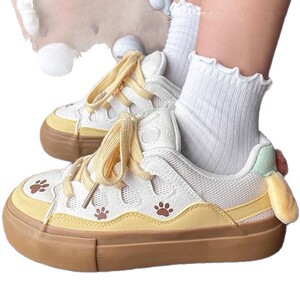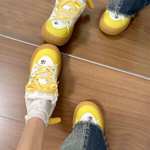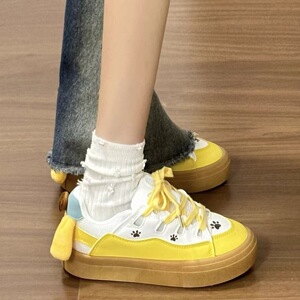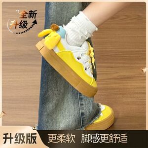 女板鞋2025新款高颜值奶黄可爱布丁狗小众学生鞋百搭厚底可爱女鞋