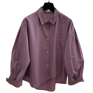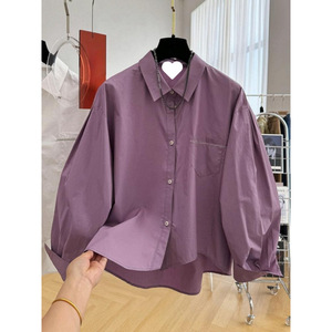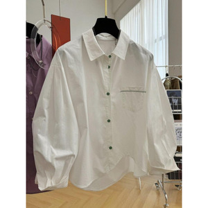 2025春秋款高级感刺绣棉布不规则宽松休闲长袖衬衫女法式上衣小衫