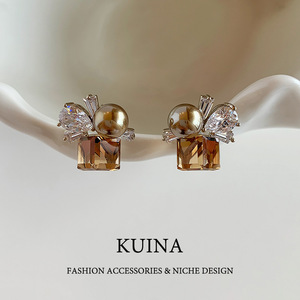 香槟咖色水晶耳环银针