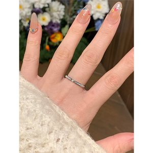 仿白贝母素圈戒指女款韩系简约食指戒清冷感百搭点钻贝母指环代发