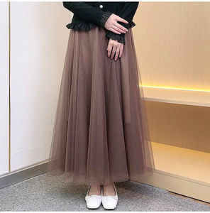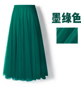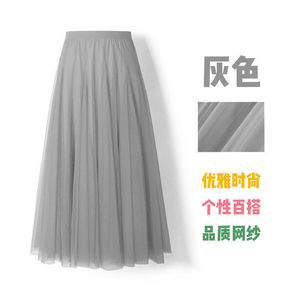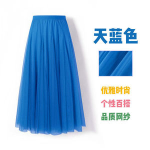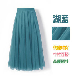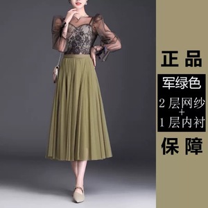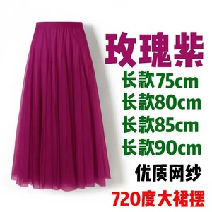 720度广场舞红色网纱半身长裙大摆裙显瘦A字裙遮胯显瘦紫色纱裙