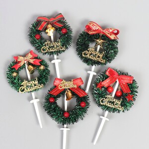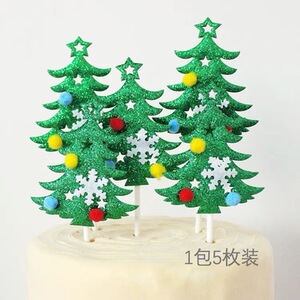 圣诞节蛋糕装饰插牌草圈叶子梅花鹿圣诞树礼包生日烘焙甜品台插旗