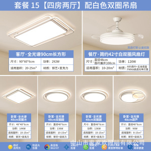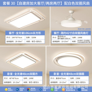 护眼套餐46【自建房加大客厅-6房3厅】大客厅+白射筒餐吊+白双圈风扇
